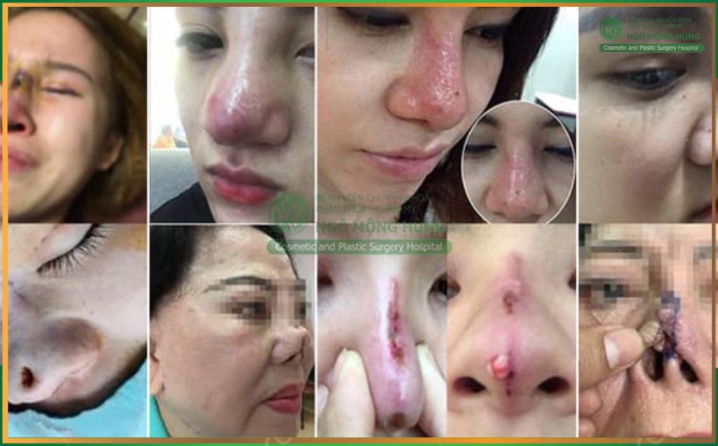 | Lộ sụn hoặc bóng đỏ đầu mũi | Sử dụng sụn kém chất lượng, vật liệu có độ tương thích kém. | Da mũi mỏng, bóng đỏ, có thể phải tháo sụn và sửa lại hoàn toàn. |