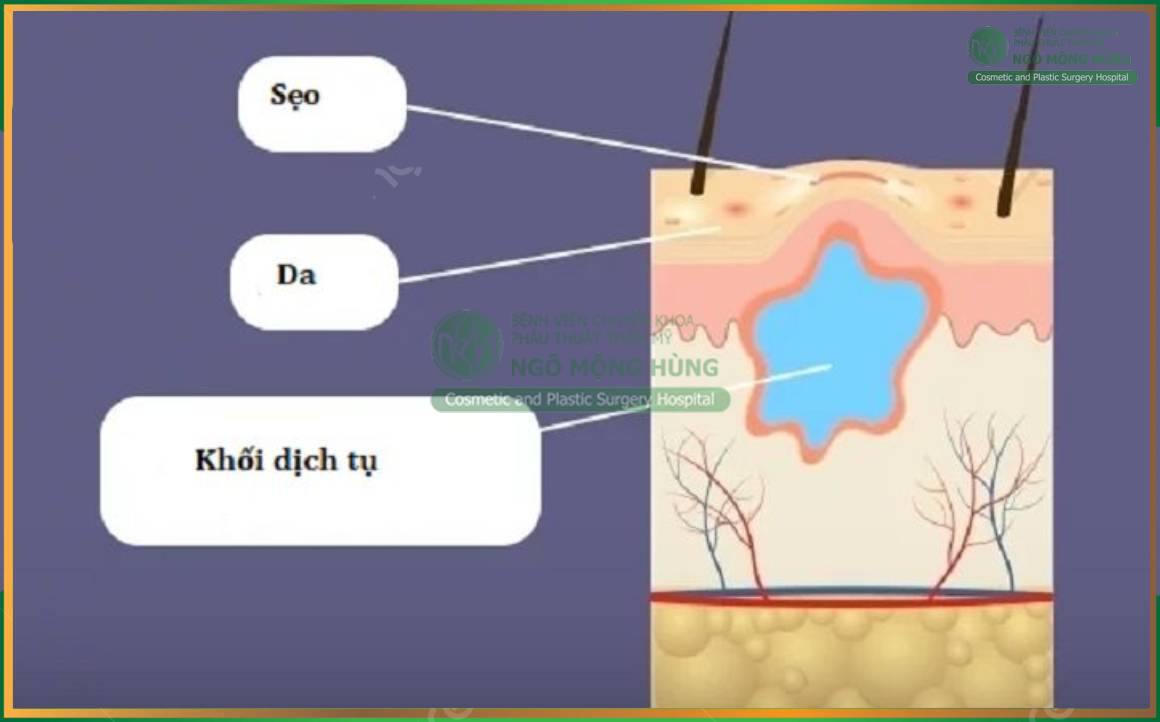 Đây là biến chứng thường gặp sau phẫu thuật hút mỡ. Hiện tượng này xuất hiện khi các huyết thanh và máu ứ bầm tồn đọng trong 1 khoang của cơ thể gây ra kích ứng và viêm, ảnh hưởng đến các khu vực xung quanh. Để khắc phục biến chứng này, bác sĩ sẽ sử dụng kim tiêm để chọc và hút vùng dịch, máu bầm ra ngoài.