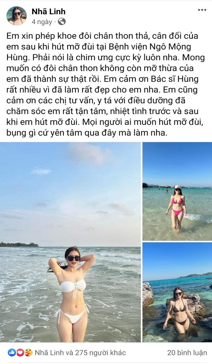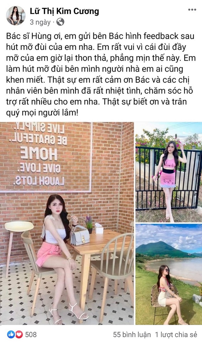 Cùng xem những chia sẻ cảm nhận của các chị em sau khi họ thực hiện hút mỡ tại đây trên trang Facebook cá nhân của các khách hàng nhé.