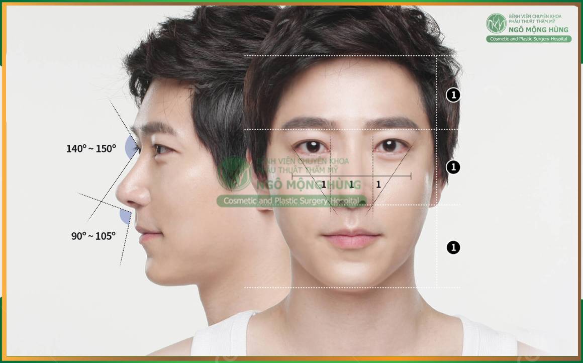- Nam: Góc mũi – môi thường là 90-95 độ (tạo sự vững chãi) và góc trán – mũi khoảng 140-150 độ.