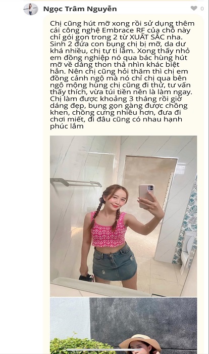 Bởi vậy, trước khi thực hiện, chị em cần tìm hiểu các review hút mỡ bụng Webtretho, xem những đánh giá hút mỡ bụng từ những người đã trải nghiệm dịch vụ trước đó để có cái nhìn khách quan và đưa ra lựa chọn phù hợp.