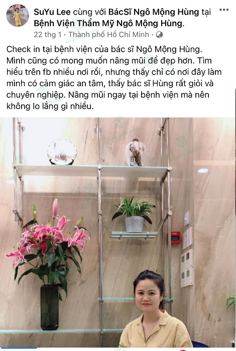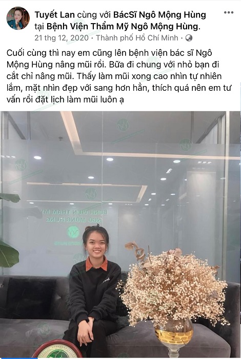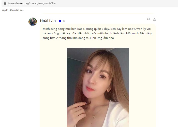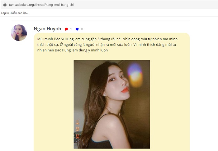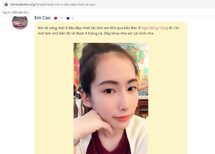 Bên cạnh những lời chia sẻ sự yêu mến, tin cậy Bệnh viện Bác Sĩ Ngô Mộng Hùng trên trang facebook. Đông đảo các chị em còn dành những lời khen ngợi có cánh cho nơi đây trên trang diễn đàn tâm sự dao kéo làm đẹp có uy tín, với hàng triệu người theo dõi.