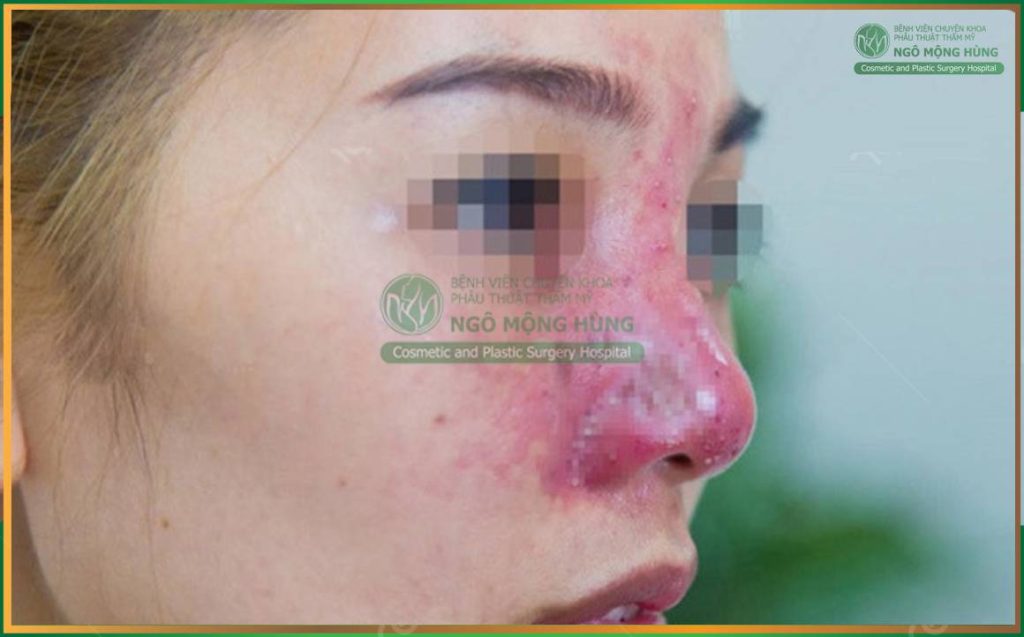 - Nhiễm trùng, sưng tấy, hoại tử: Là biến chứng nguy hiểm nhất, biểu hiện bằng việc mũi sưng đỏ kéo dài, đau nhức dữ dội, sốt cao, chảy mủ hoặc dịch, nguy cơ hoại tử da mũi nếu không tháo sụn kịp thời.