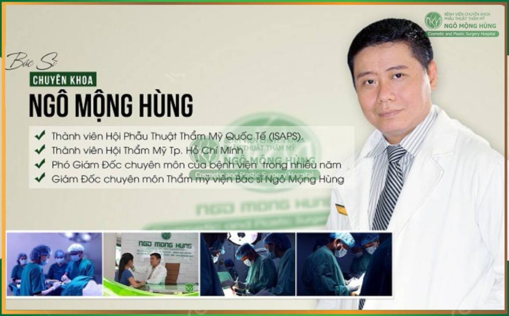 Bác sĩ Ngô Mộng Hùng là một trong những bác sĩ nâng ngực giỏi TPHCM có bề dày kinh nghiệm lâu năm trong ngành phẫu thuật thẩm mỹ. Hiện tại, Bác sĩ Hùng đã có hơn 20 năm kinh nghiệm trong ngành, giúp khách hàng hoàn toàn an tâm khi trao gửi nhan sắc. Lý lịch của bác sĩ Ngô Mộng Hùng cũng vô cùng chói sáng: Tốt nghiệp chuyên ngành phẫu thuật thẩm mỹ và từng đi tu nghiệp nhiều năm tại các nước có nền thẩm mỹ phát triển vượt trội như Hàn Quốc, Hoa Kỳ, Thái Lan…